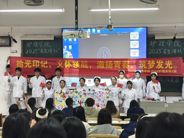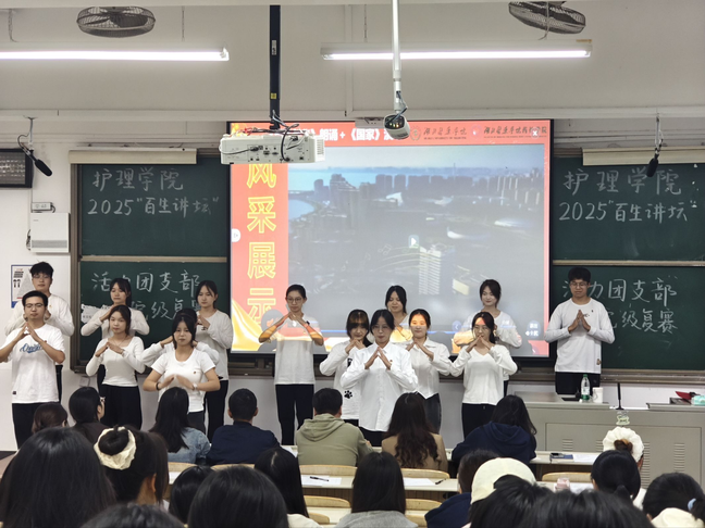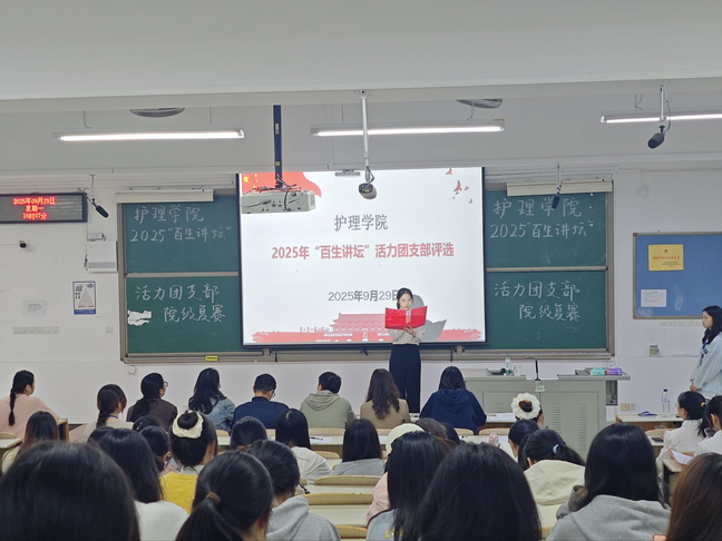 9支参赛队伍依次登场,通过多样化的形式展现了支部的活力与风采。药护23护理学1班以《青春聚力,护梦启航》为题,系统阐述了支部在思想引领和专业学习上取得的丰硕成果;23护本2班的《青春绽华彩,团旗舞新程》则通过丰富的活动案例,生动展示了其在组织建设和学风建设上的扎实成效;23涉外护理班的《行远自迩,笃行不怠》聚焦专业实践与国际视野的培养,彰显了涉外护理学子的开阔眼界与进取精神。各支部的汇报形式新颖,有的结合PPT进行生动讲解,有的则巧妙运用视频、情景短剧等创新载体,将“学思想、强党性、重实践、建新功”的总体要求融入青春叙事之中,引人入胜。最终经评委组依据评分标准认真评议,本次比赛结果最终揭晓:药护23护理学1班、23护理学3班、23涉外护理班将代表学院参加学校决赛。